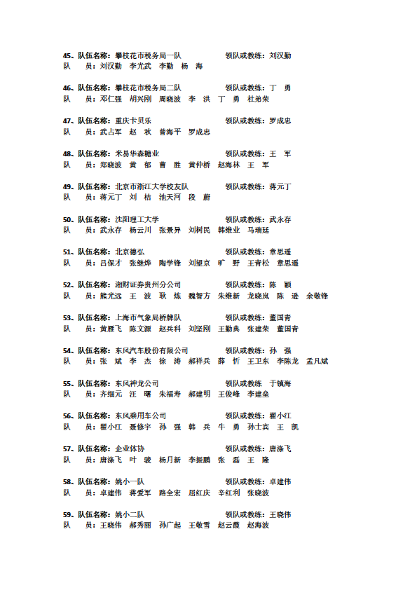 截止至2020年7月31日20:00時(shí),2020(首屆)中國職工橋牌錦標(biāo)賽報(bào)名工作順利結(jié)束。本次報(bào)名工作受到了各行業(yè)體育協(xié)會(huì),各會(huì)員單位、機(jī)關(guān)、企事業(yè)單位和社會(huì)團(tuán)體的大力支持。經(jīng)統(tǒng)計(jì),已報(bào)名隊(duì)伍共62支,總計(jì)408人。詳細(xì)信息如下:
