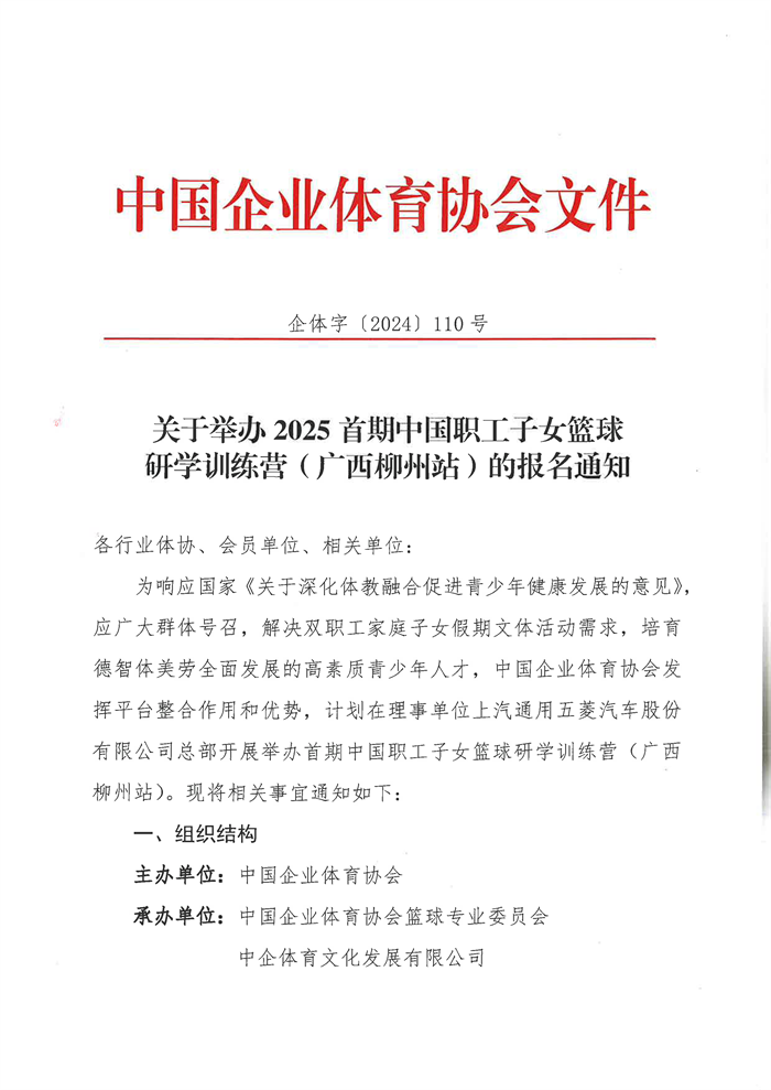 關于舉辦2025首期中國職工子女籃球研學訓練營(廣西柳州站)的報名通知