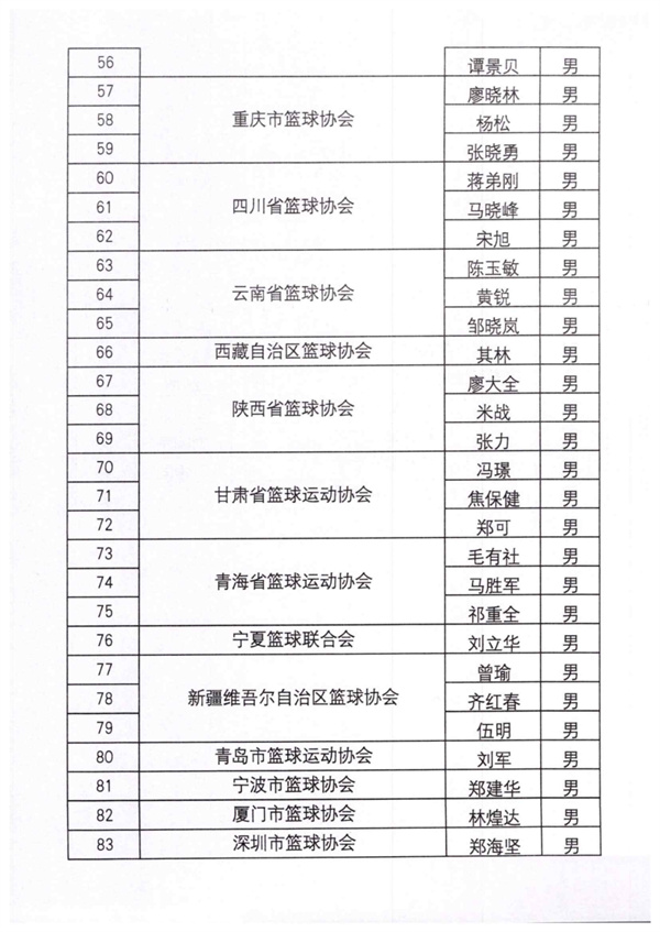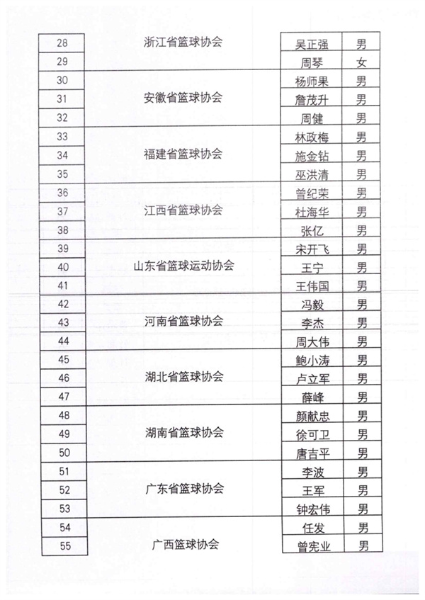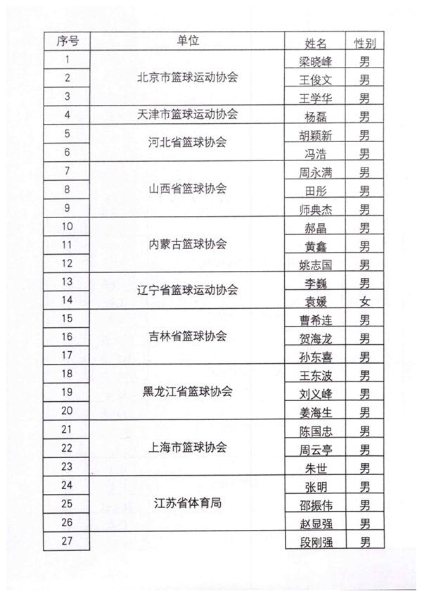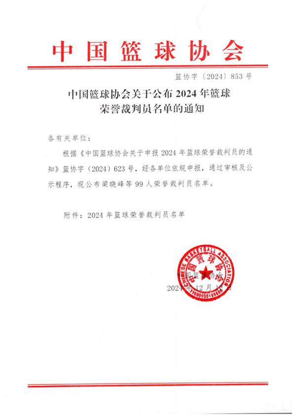 中國籃球協會關于公布2024年籃球榮譽裁判員名單的通知