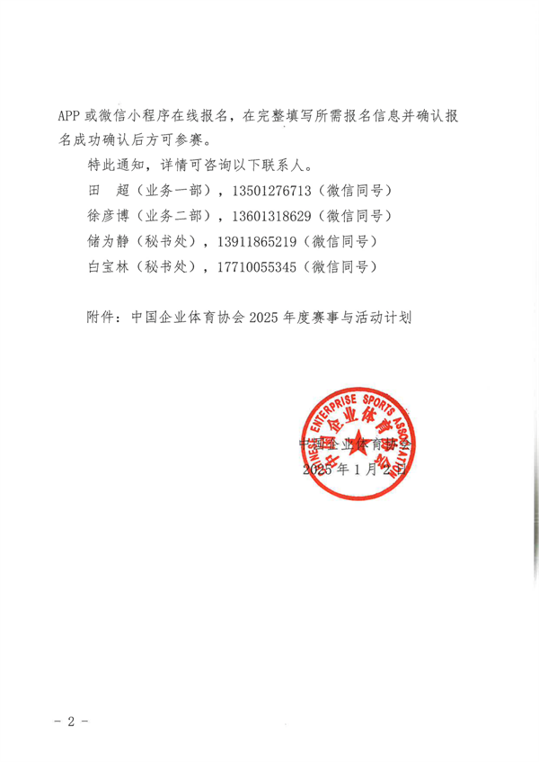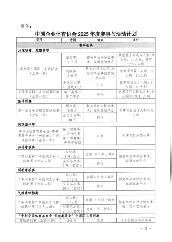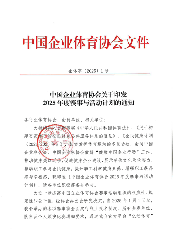 中國(guó)企業(yè)體育協(xié)會(huì)關(guān)于印發(fā)2025年度賽事與活動(dòng)計(jì)劃的通知