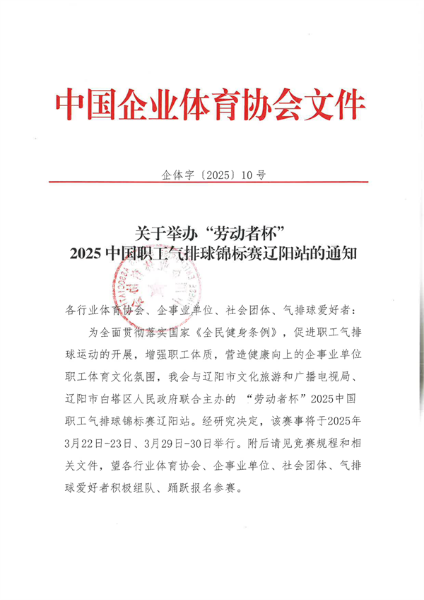 關于舉辦“勞動者杯”2025中國職工氣排球錦標賽遼陽站的通知