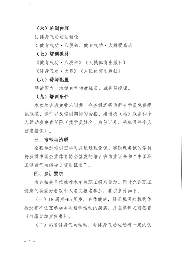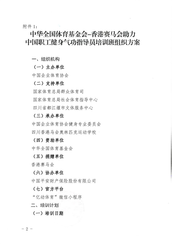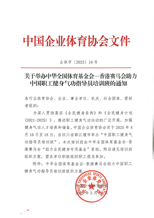 關于舉辦中華全國體育基金會—香港賽馬會助力中國職工健身氣功指導員培訓班的通知