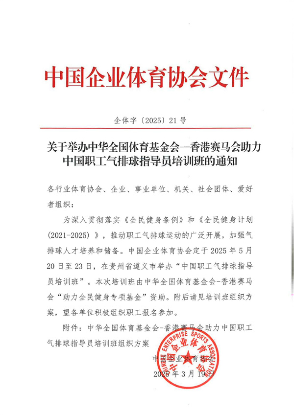 關于舉辦中華全國體育基金會—香港賽馬會助力中國職工氣排球指導員培訓班的通知