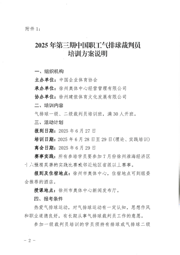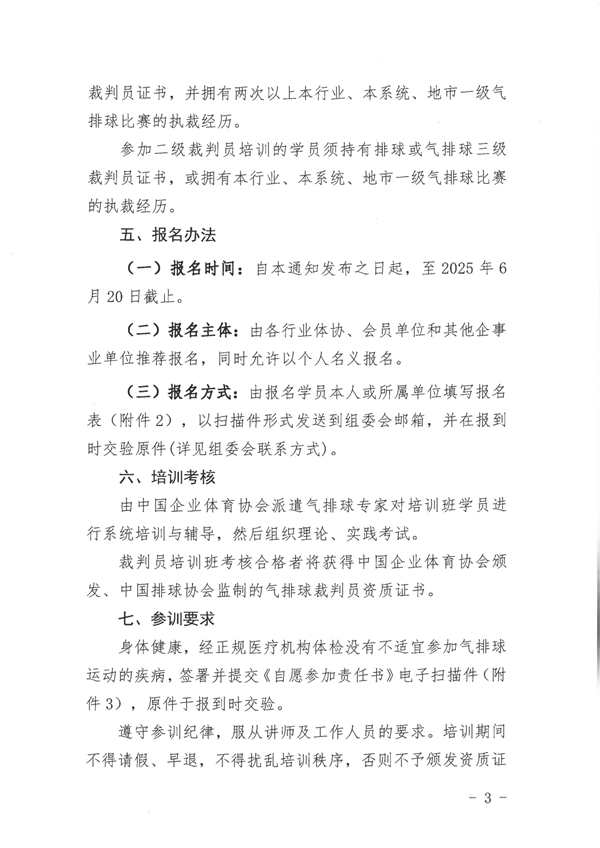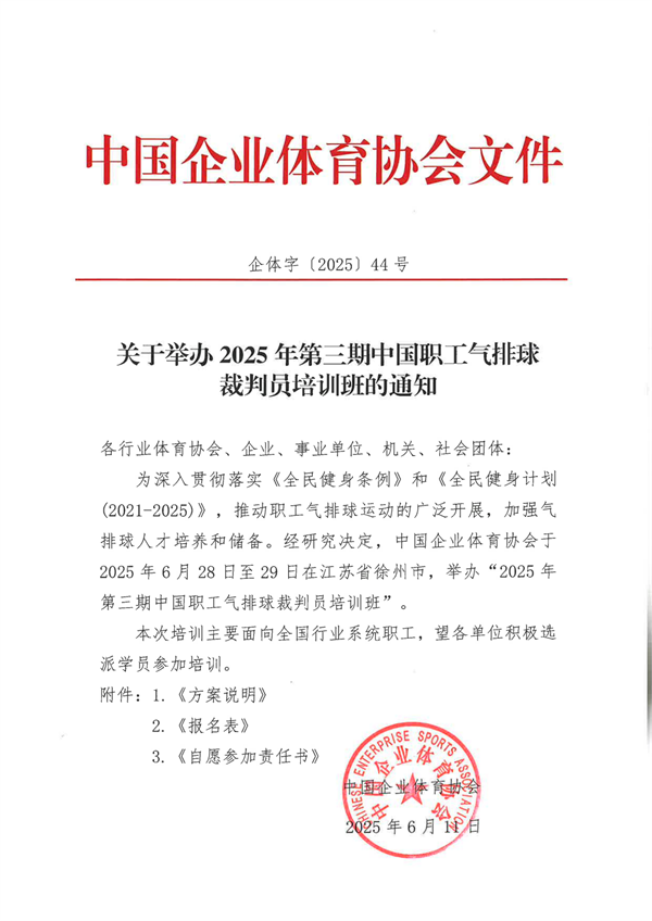 關(guān)于舉辦 2025 年第三期中國職工氣排球裁判員培訓(xùn)班的通知