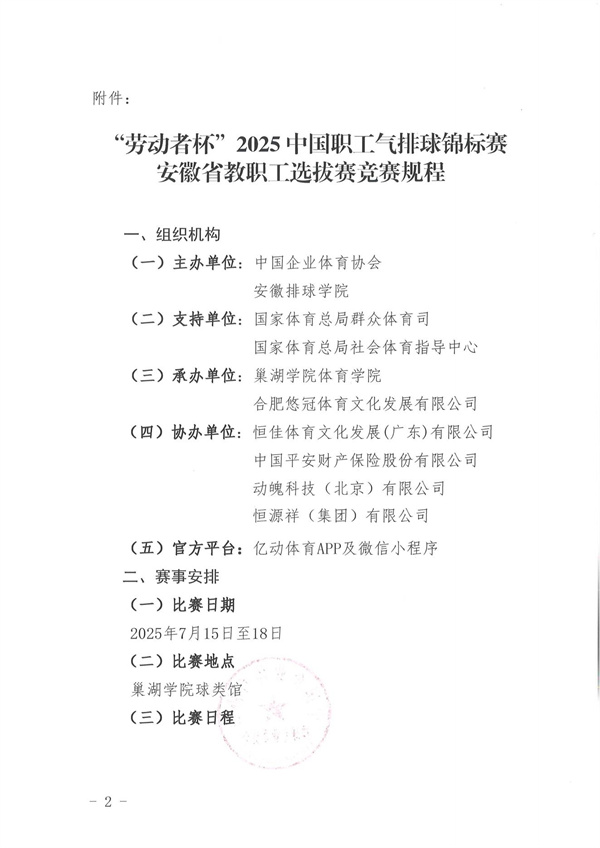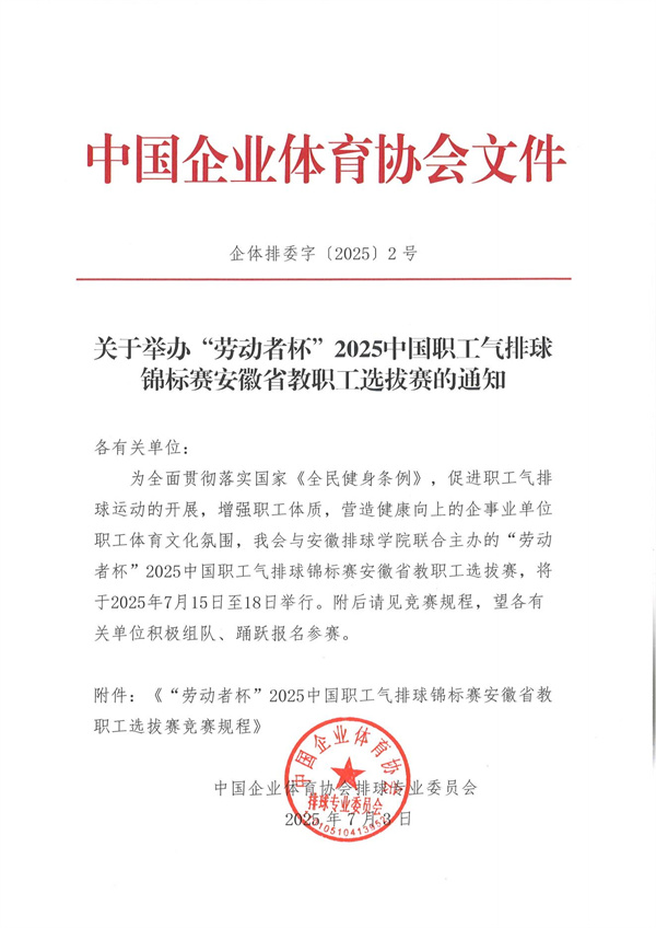 關(guān)于舉辦"勞動者杯"2025中國職工氣排球錦標(biāo)賽安徽省教職工選拔賽的通知