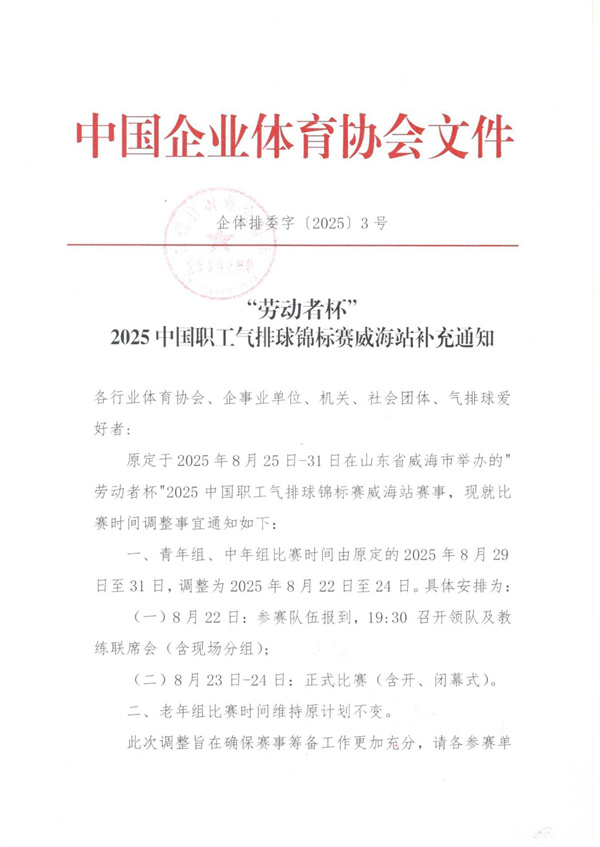 "勞動者杯"2025年中國職工氣排球錦標賽威海站補充通知