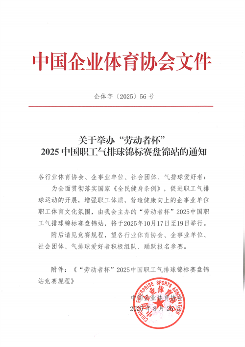 關(guān)于舉辦“勞動者杯”2025年中國職工氣排球錦標賽盤錦站的通知