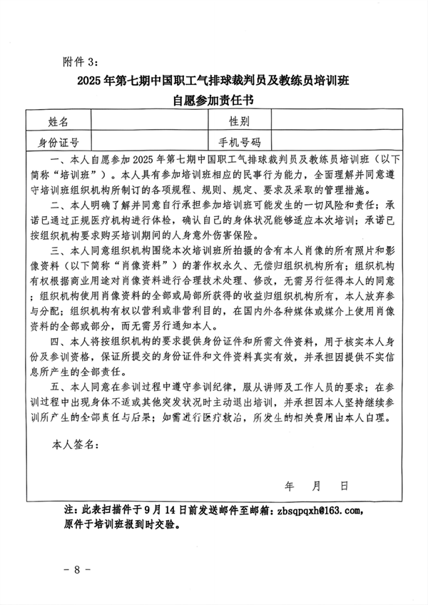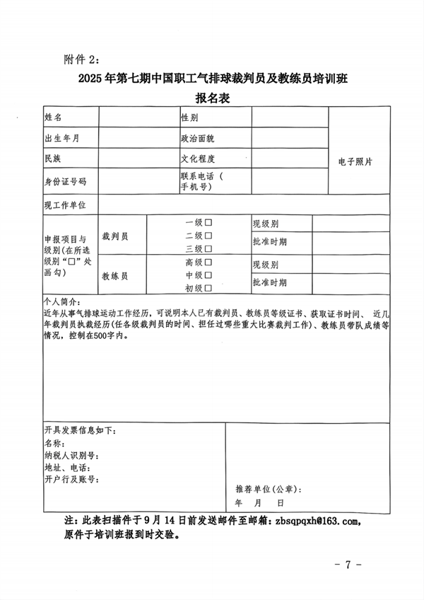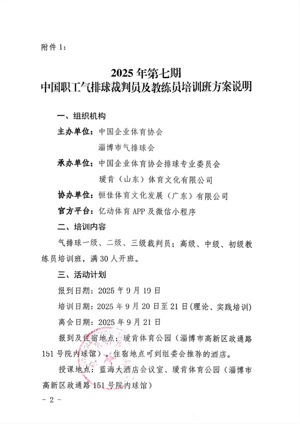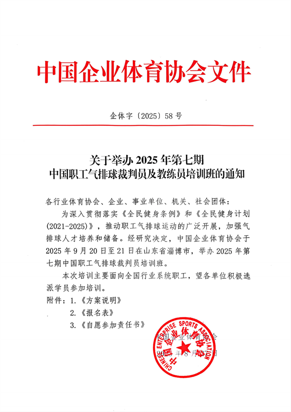 關于舉辦2025年第七期中國職工氣排球裁判員及教練員培訓班的通知
