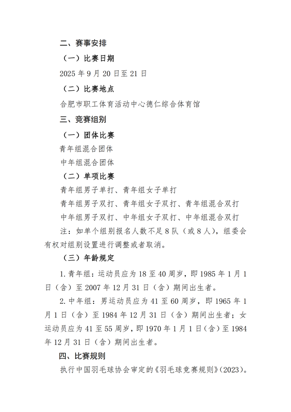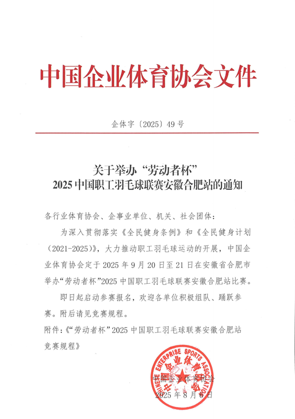 關于舉辦“勞動者杯”2025年羽毛球安徽合肥分站賽通知