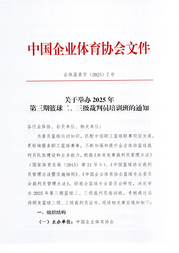 1、關(guān)于舉辦2025年第三期籃球二、三級裁判員培訓班的通知