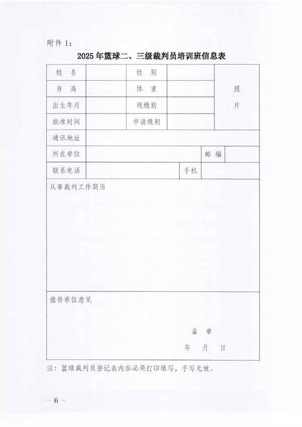2、附件1:2025年籃球二、三級裁判員培訓班信息表