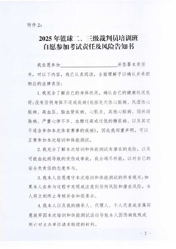 3、附件2:2025年籃球二、三級裁判員培訓班自愿參加考試責任及風險告知書