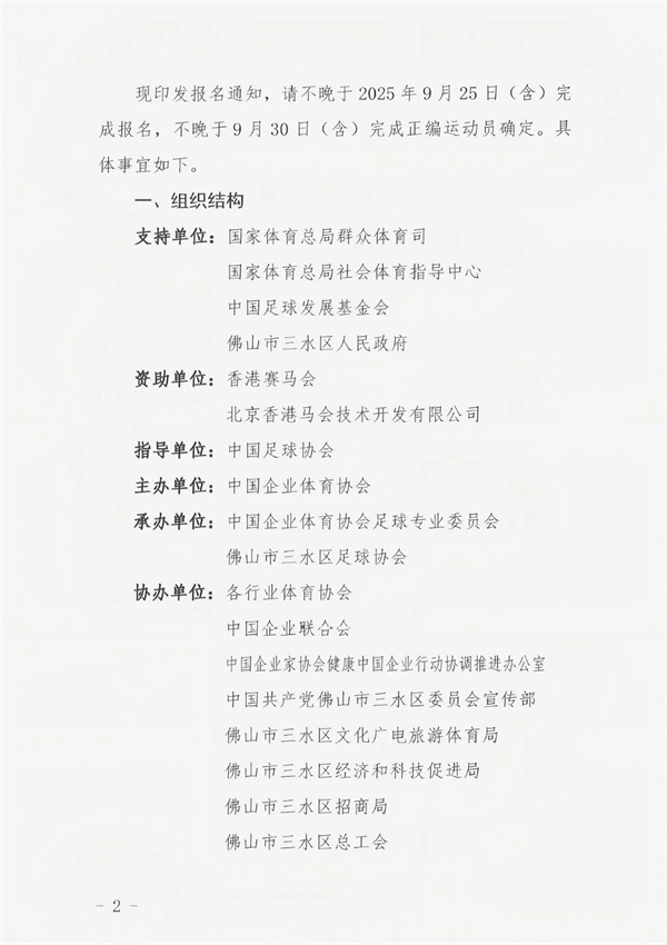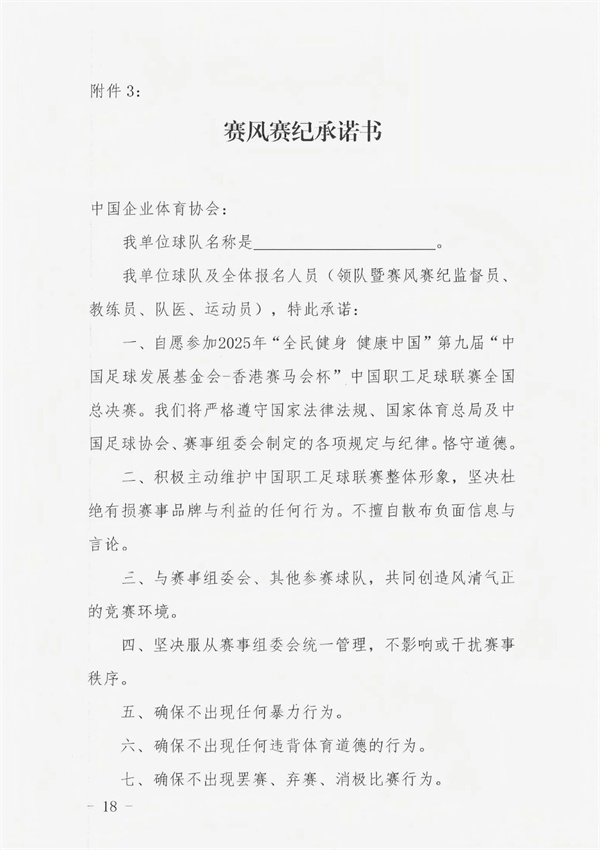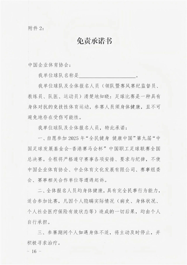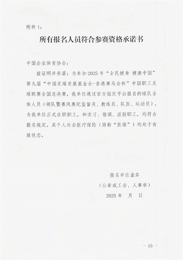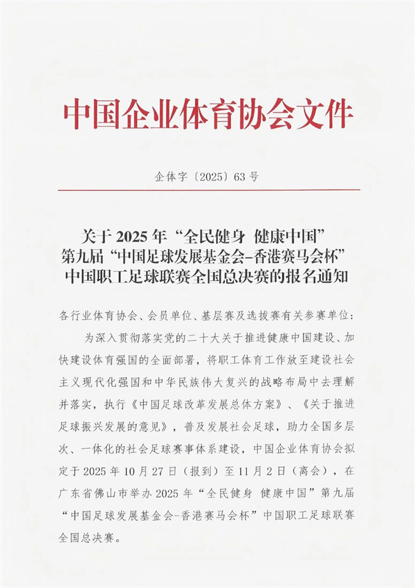 關(guān)于2025年“全民健身健康中國”第九屆“中國足球發(fā)展基金會-香港賽馬會杯”中國職工足球聯(lián)賽全國總決賽的報名通知