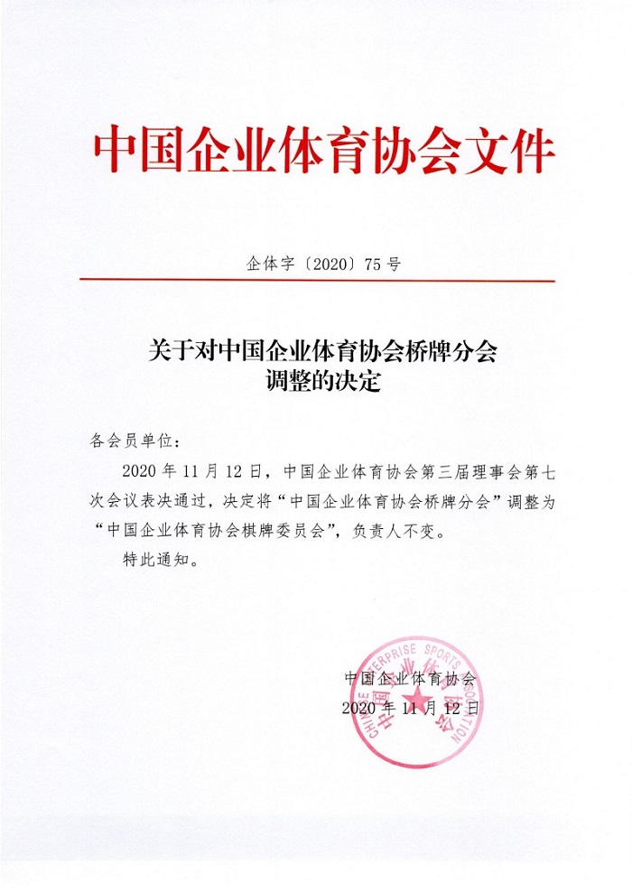 關(guān)于對(duì)中國(guó)企業(yè)體育協(xié)會(huì)橋牌分會(huì)進(jìn)行調(diào)整的決定
